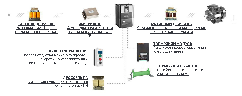 · Возможность применения длинных кабелей между ПЧ и электродвигателем без риска повреждения оборудования