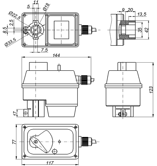 Мощность: 230, 24 V –5 W; 12 V – 1,5 W