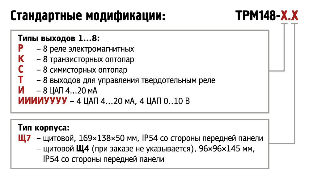 Для заказа прибора в корпусе Щ7 добавьте ".Щ7" в конец выбранной маркировки . Например ТРМ148-Р.Щ7 или ТРМ148-ИИИИРРРР.Щ7