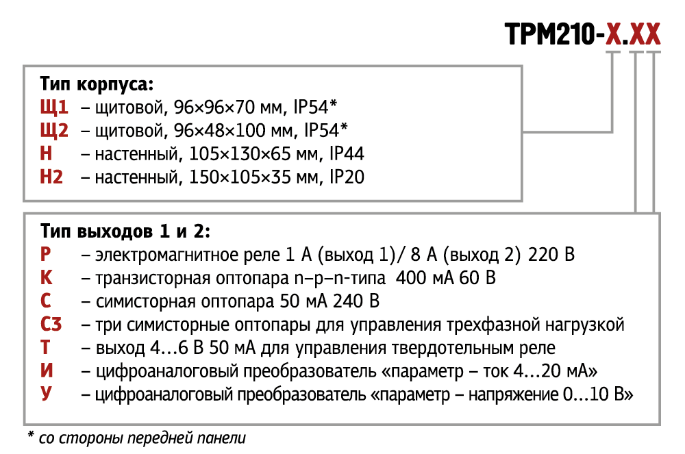 Прибор выпускается в 4-х типах корпусов: настенном Н, щитовых Щ1, Щ2 и новом эргономичном корпусе Н2