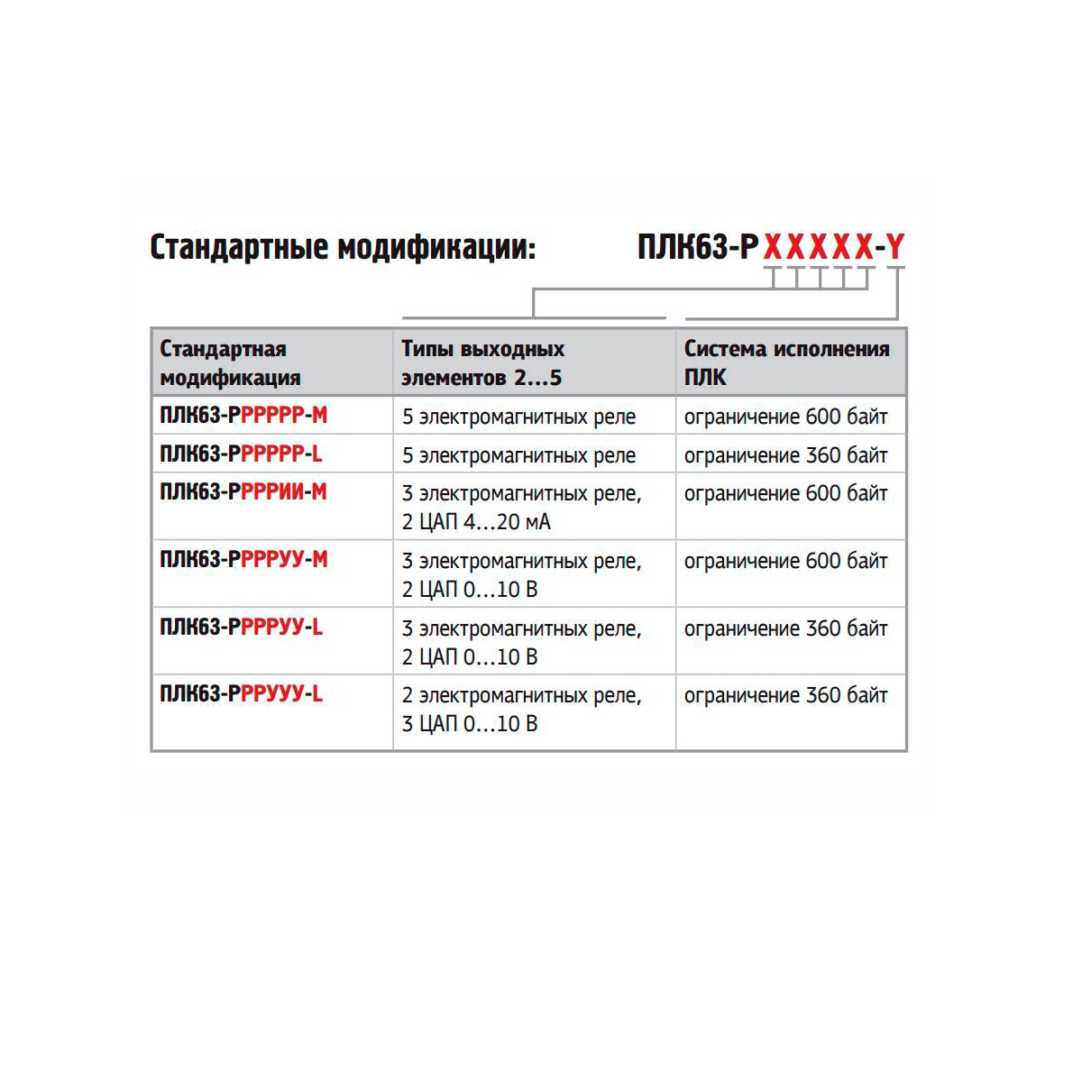 600 байт - для ПЛК63-M 360 байт - для ПЛК63-L |