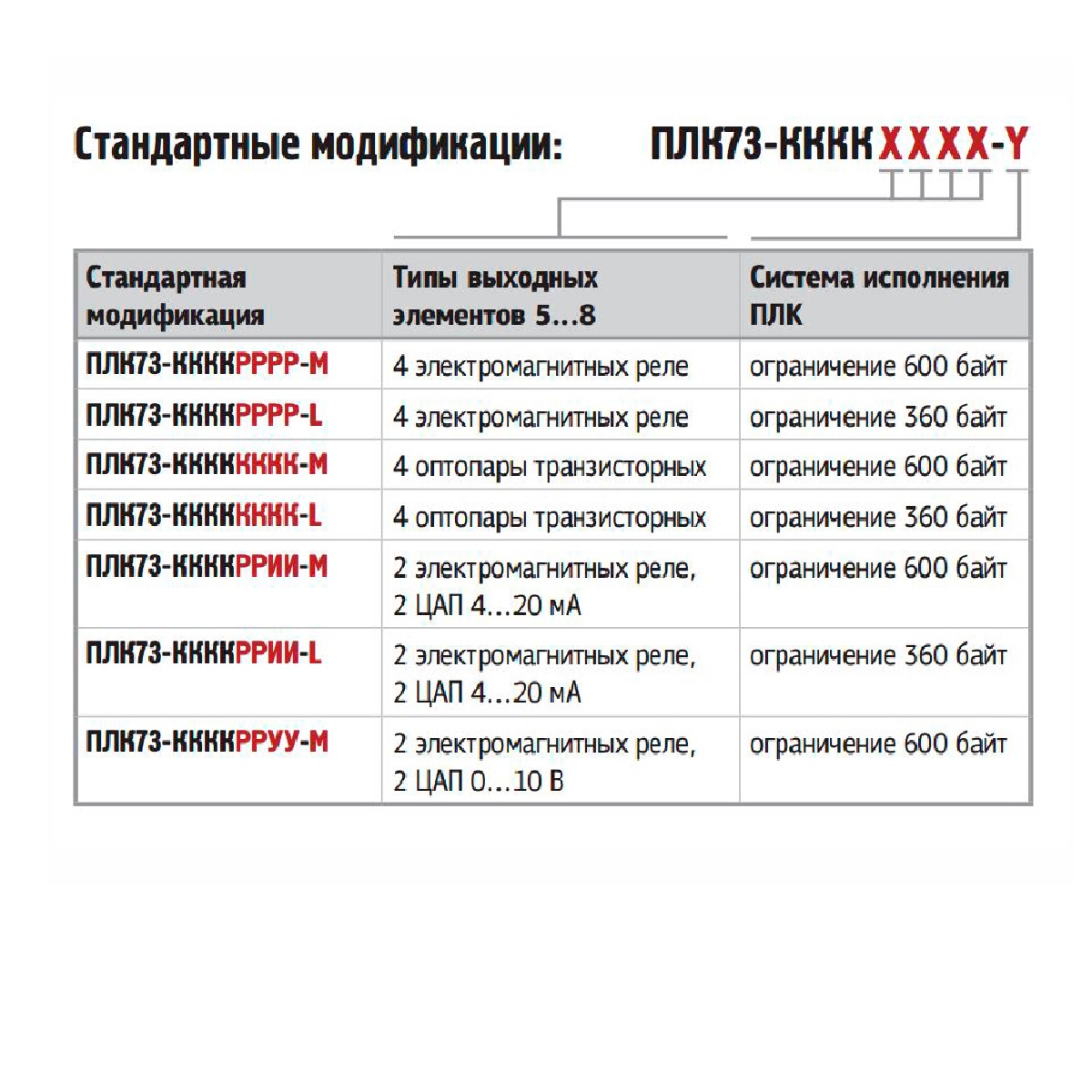600 байт - для ПЛК73-M 360 байт - для ПЛК73-L |