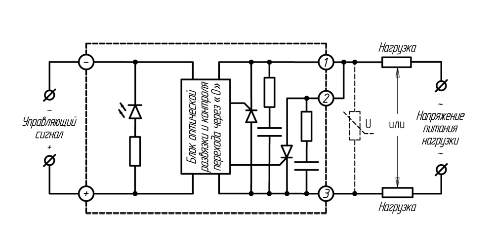Встроенная шунтирующая выход RC-цепочка* повышает надежность работы ТТР (ТППТ) при коммутации нагрузки индуктивного типа.