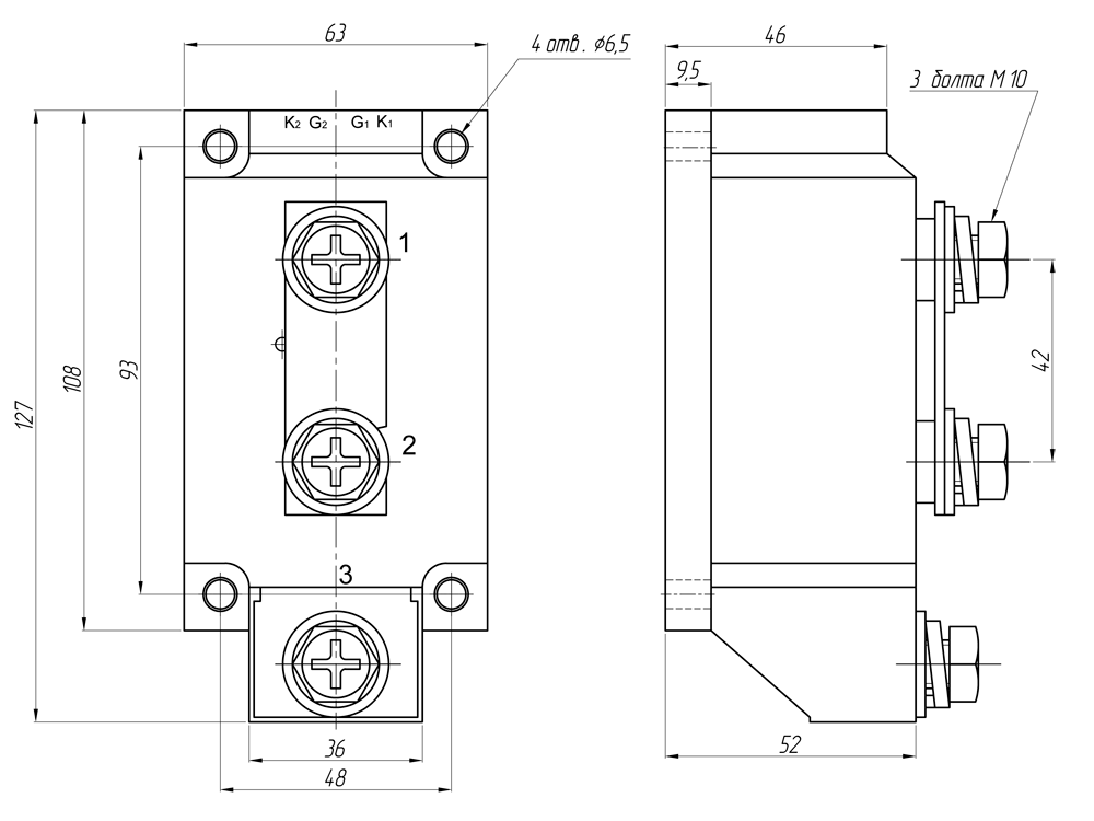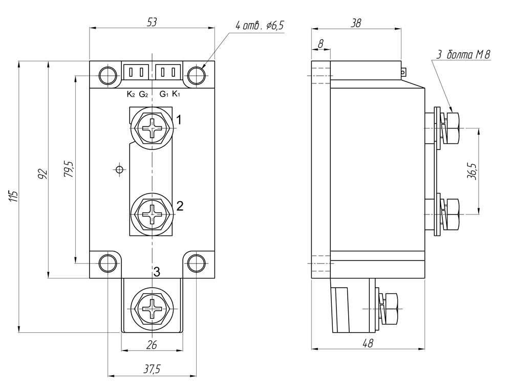 Корпусные особенности (тиристорных переключателей) твердотельных реле серии GaDH-xxx120.ZD3 и GwDH-xxx120.ZD3