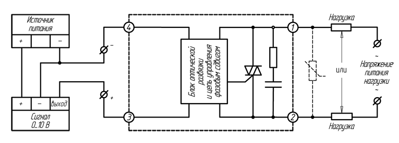3 - Питание нагрузки напряжением, отличным от номинального не рекомендуется. Производитель не гарантирует стабильную работу ТТР при таких условиях эксплуатации.