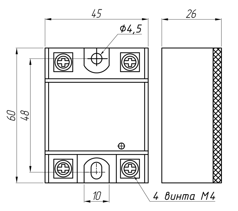 Крепление винтами на плоскость или радиатор охлаждения |