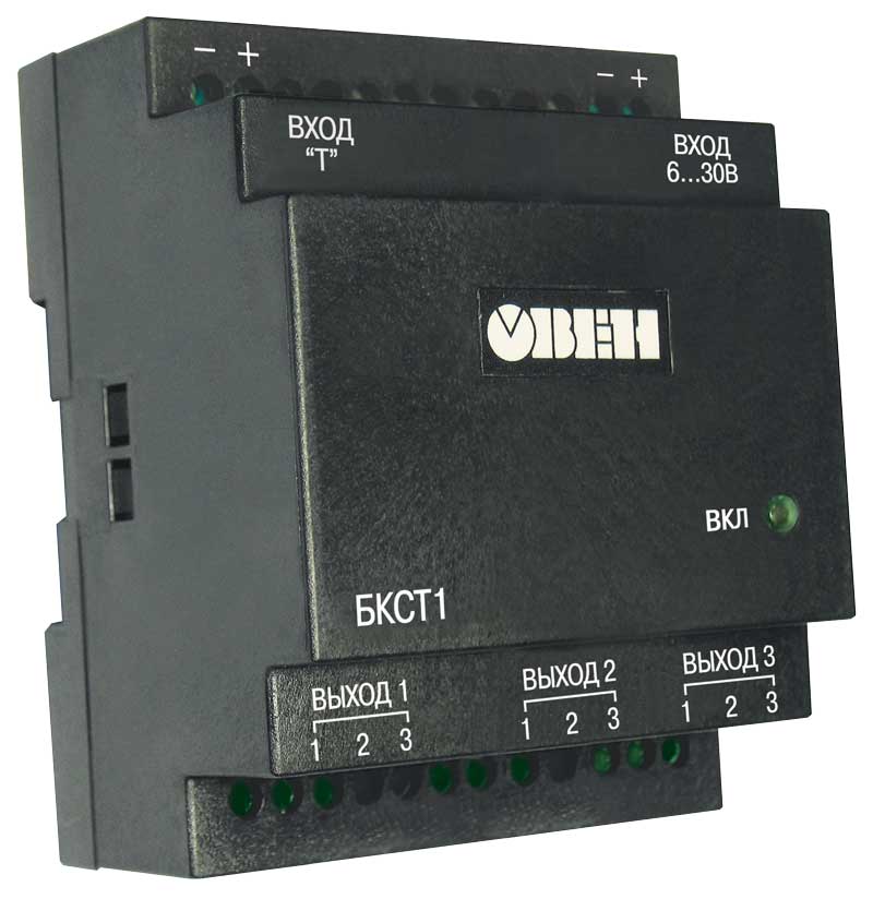 Блок БКСТ1 преобразует выходной сигнал регулятора для управления симисторами или тиристорами, работающими с активной нагрузкой (главным образом, ТЭНами). Предназначен для совместной работы с приборами ОВЕН, имеющими выходы «К», «Р», «Т» (или другими управляющими системами с аналогичными параметрами).