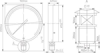 Пределы измерений в МПа (по заказу поставляются в единицах измерения кПа, кгс/см2, бар)