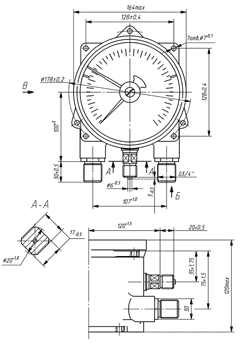 Измеряемое давление через штуцер поступает в полость измерительной пружины и посредством трибко-секторного механизма вызывает пропорциональлье движение стрелки по шкале.