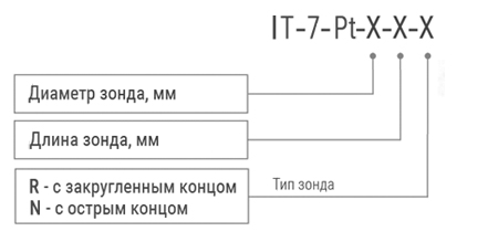 Термочувствительный элемент длиной не более 7 мм находится на конце зонда. Для получения точных значений измерения рекомендуется устанавливать зонд в измеряемую среду на глубину не менее 20 мм. Зонд изготовлен из пищевой нержавеющей стали, поэтому прибор можно использовать в пищевой промышленности. Зонд может иметь как округлый, так и заостренный конец. Наименьшую тепловую инерционность имеют приборы с диаметром зонда 2 мм. Для более жёстких условий эксплуатации выпускаются приборы с диаметром зонда от 3,0 до 5,0 мм.