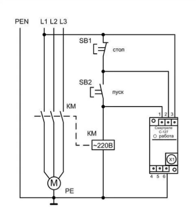 Совместно с магнитным пускателем, установленным в цепи питания электродвигателя, контроллер Смартреле С-127 обеспечивает: