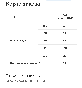 | Блок питания HDR-15-24 | 15,2 | 1630 |