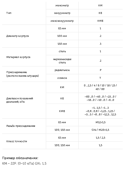Тип КМ (КВ, КМВ). Манометр для измерения низких давлений газов (напоромер) применяется для измерения давления сухих, газообразных сред, неагрессивных к медным сплавам.