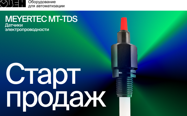 С 23 декабря 2025 года компания ОВЕН-ПЕРМЬ открывает продажи датчиков электропроводности MEYERTEC MT-TDS: теперь они доступны не только в комплекте с контроллером КосМастер, но и как самостоятельный продукт.