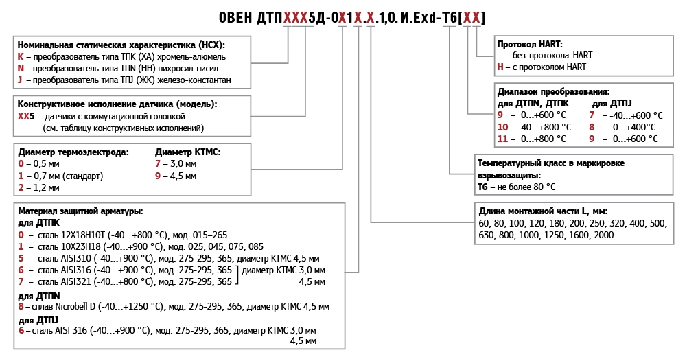 Пример обозначения при заказе: ОВЕН ДТПК365Д-0915.120.1,0.И.Exd-T6[10]