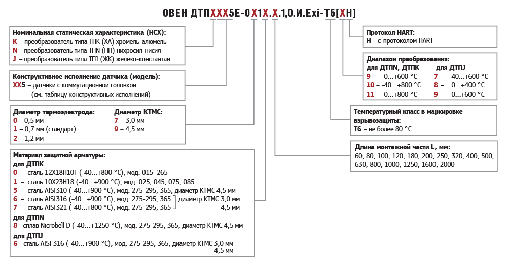 Пример обозначения при заказе: ОВЕН ДТПК035Е-0110.120.1,0.И.Еxi-T6[10Н]