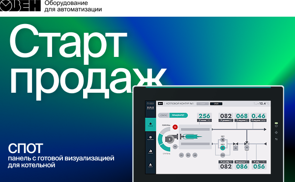 СПОТ – специализированная панель оператора для работы с контроллерами управления котельной КТР-121. Доступны исполнения с диагональю экрана 7 и 10 дюймов. Панель поставляется с готовым интерфейсом, поэтому не требует программирования и разработки дизайна. СПОТ определяет состав подключенных приборов, обеспечивает удобную навигацию между ними, предоставляет доступ ко всем параметрам, ведет архивы аварий и событий, отображает данные в виде графиков