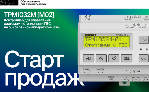 ТРМ1032М – контроллер с готовыми алгоритмами для управления системами отопления и ГВС. Не требует программирования и легко интегрируется в работу теплового пункта.