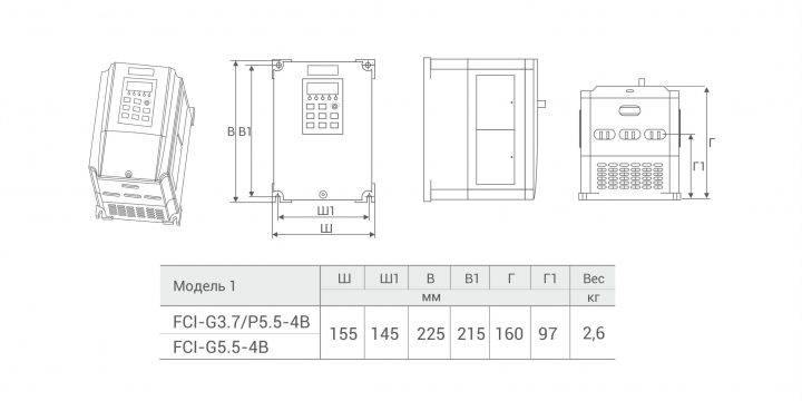 | FCI-G3.7/P5.5-4B | 10,5 | 15,5 | 8,8 | 13 | 3,7 | 5,5 | Встроен | нет |