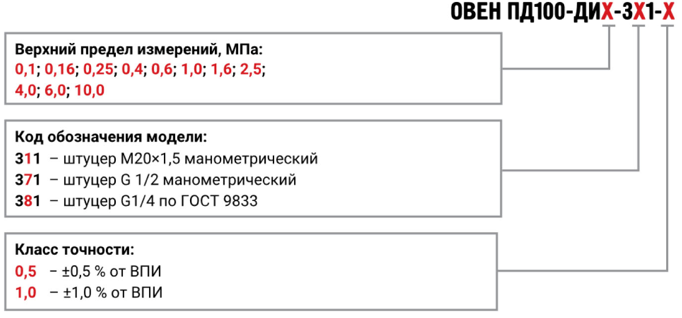 - верхний предел измеряемого давления (ВПИ) – от 0,1 до 10,0 МПа.
