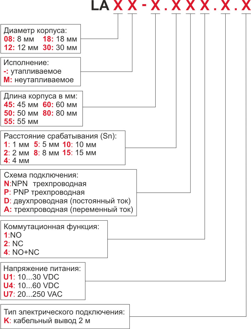 Индуктивные бесконтактные выключатели KIPPRIBOR серии LA – это датчики, выполненные в цилиндрическом корпусе, реагирующие на приближение металлического предмета (объекта) к их чувствительной части. Чувствительная часть индуктивного датчика KIPPRIBOR серии LA расположена с торца и защищена пластиковым колпачком. Номинальное расстояние срабатывания (Sn) датчиков LA зависит от модификации и может составлять 2, 4, 5, 8, 10, 15 мм.