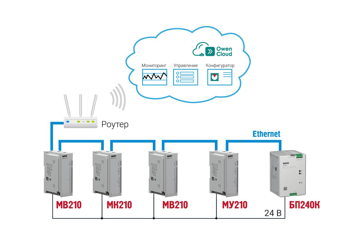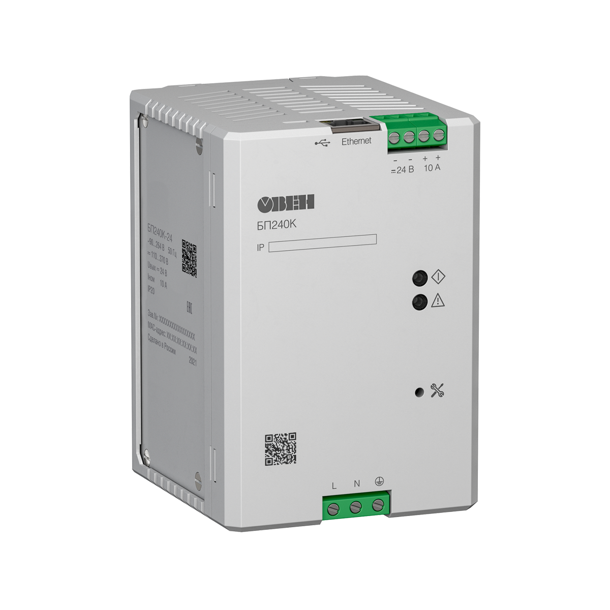 Блок питания БП240К-24 предназначен для питания стабилизированным напряжением 24 В приборов локальной автоматики и распределенных систем. Прибор является частью «Экосистемы-210» компании ОВЕН и рекомендуется для совместного применения с программируемыми логическими контроллерами ПЛК210 и модулями ввода-вывода Мх210. Встроенные программные алгоритмы позволяют блоку питания передавать данные о своем состоянии по сети Ethernet и в облачный сервис OwenCloud.