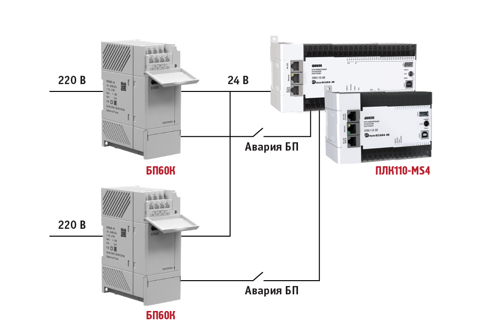 Питание ПЛК с резервированием и удаленным контролем состояния питания в SCADA или OwenCloud