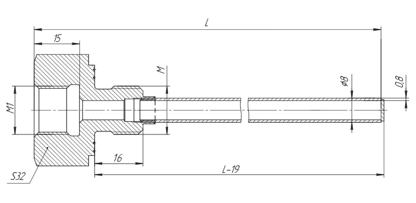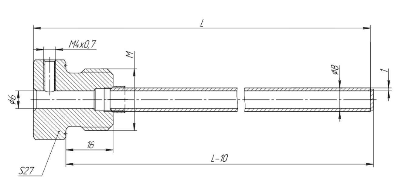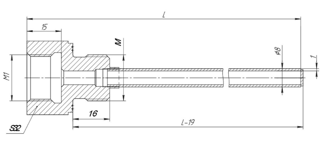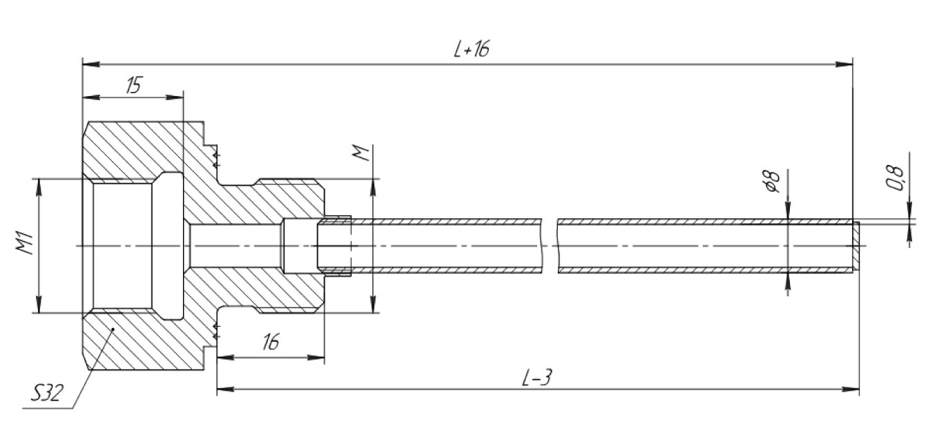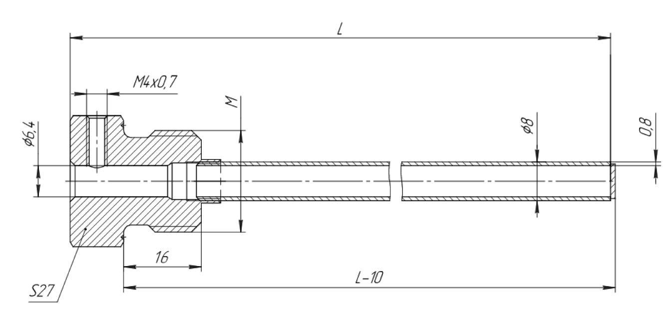 Сварные цилиндрические гильзы защитные ГЗ.6,3 предназначены для установки датчиков температуры с малыми диаметрами монтажной части 5 – 6 мм.