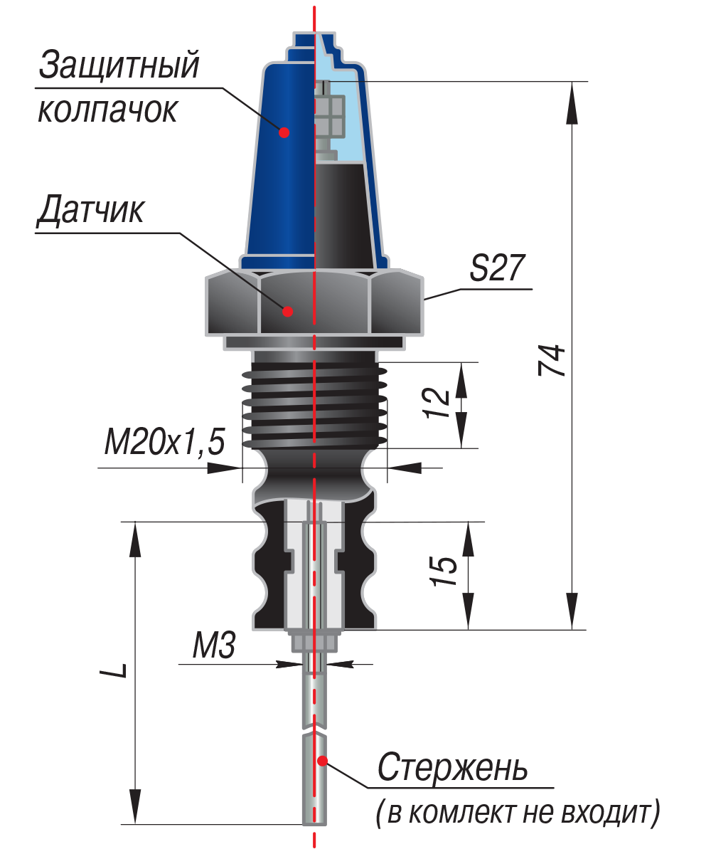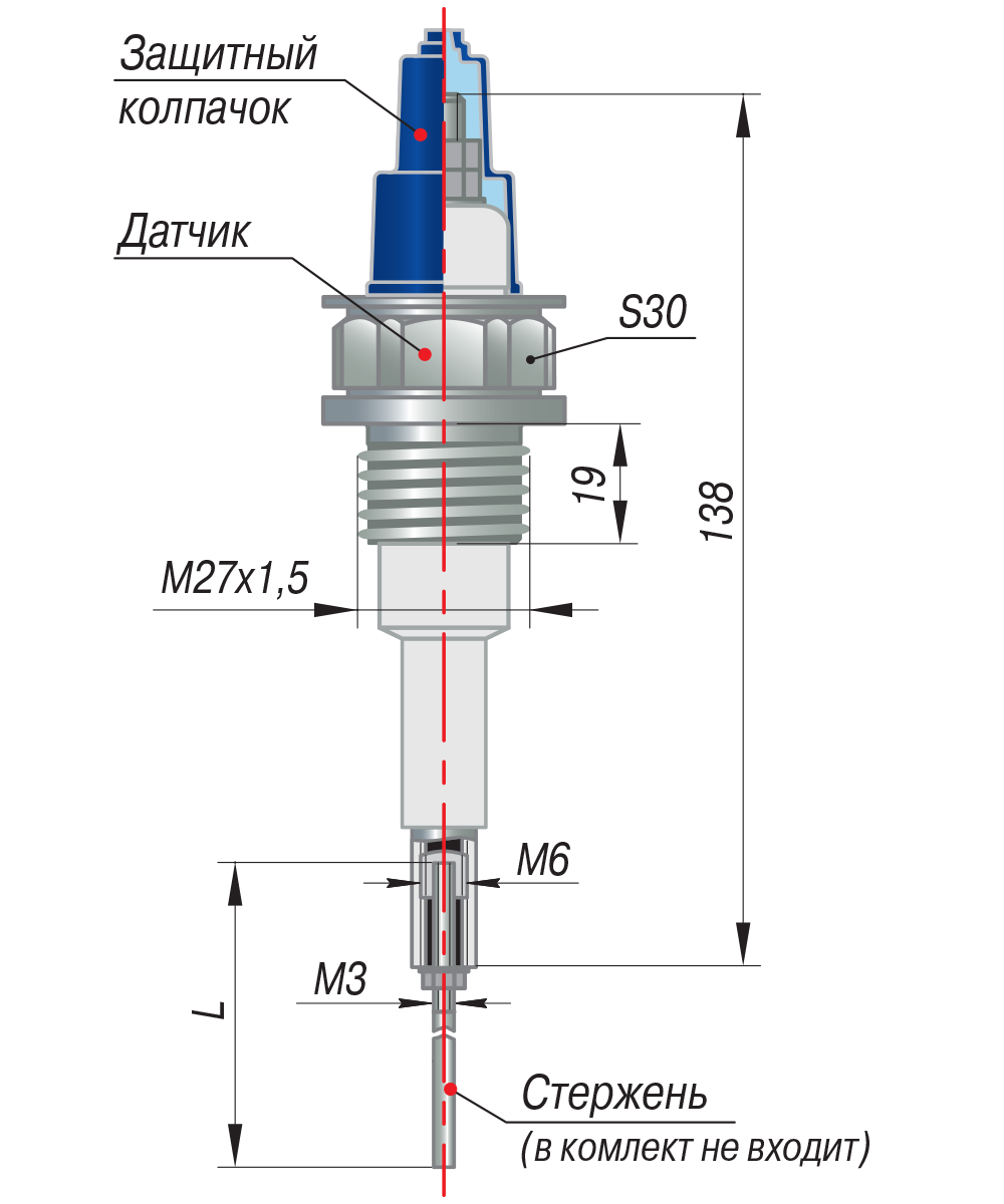 * Стержень не входит в комплект поставки датчика, он заказывается отдельно.