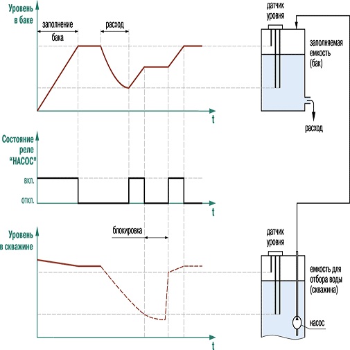 - Автоматическое заполнение или осушение резервуара до заданного уровня