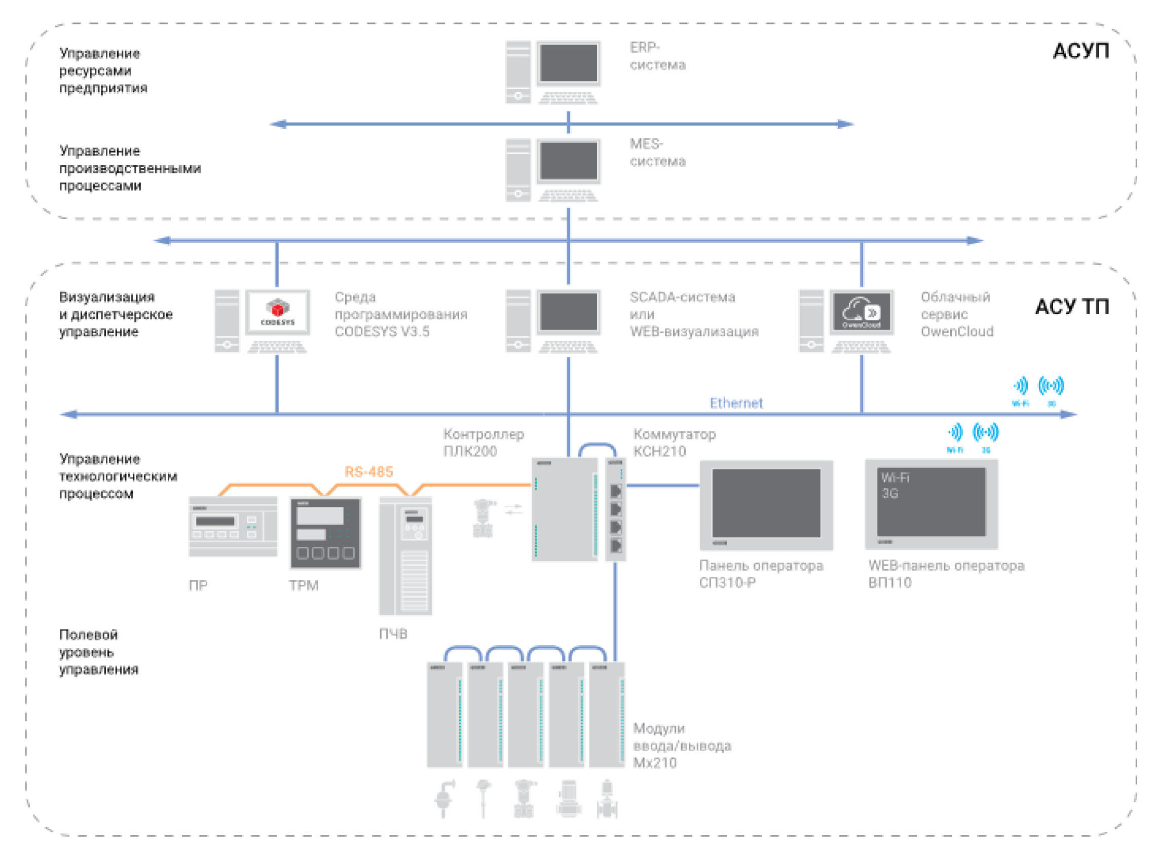 В качестве модулей расширения входных и выходных сигналов рекомендуется к использованию линейка модулей ввода/вывода Мх210 с интерфейсом Ethernet.