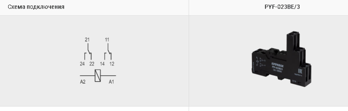 Перечень реле, совместимых с колодками KIPPRIBORPYF-023BE/2, PYF-023BE/3