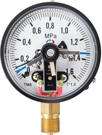 Тип ТМ (ТВ, ТМВ), серия 10, IP54. Манометры с электроконтактной приставкой с повышенной пылевлагозащищенностью предназначены для управления внешними электрическими цепями в схемах сигнализации, автоматики и блокировки технологических процессов.