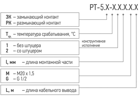 Температурные реле РТ-5 выпускаются с широким интервалом температуры срабатывания от минус 20°С до +200°С (с нормально разомкнутыми контактами). Кабель: RFS05 2х0,5мм2 высокотемпературный с силиконовой оболочкой и фторопластовой изоляцией жил.